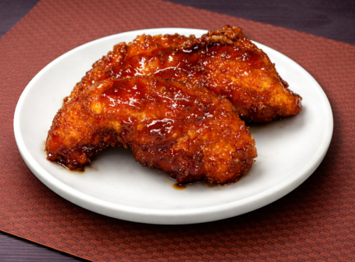 特製甘辛のたれをかけました。